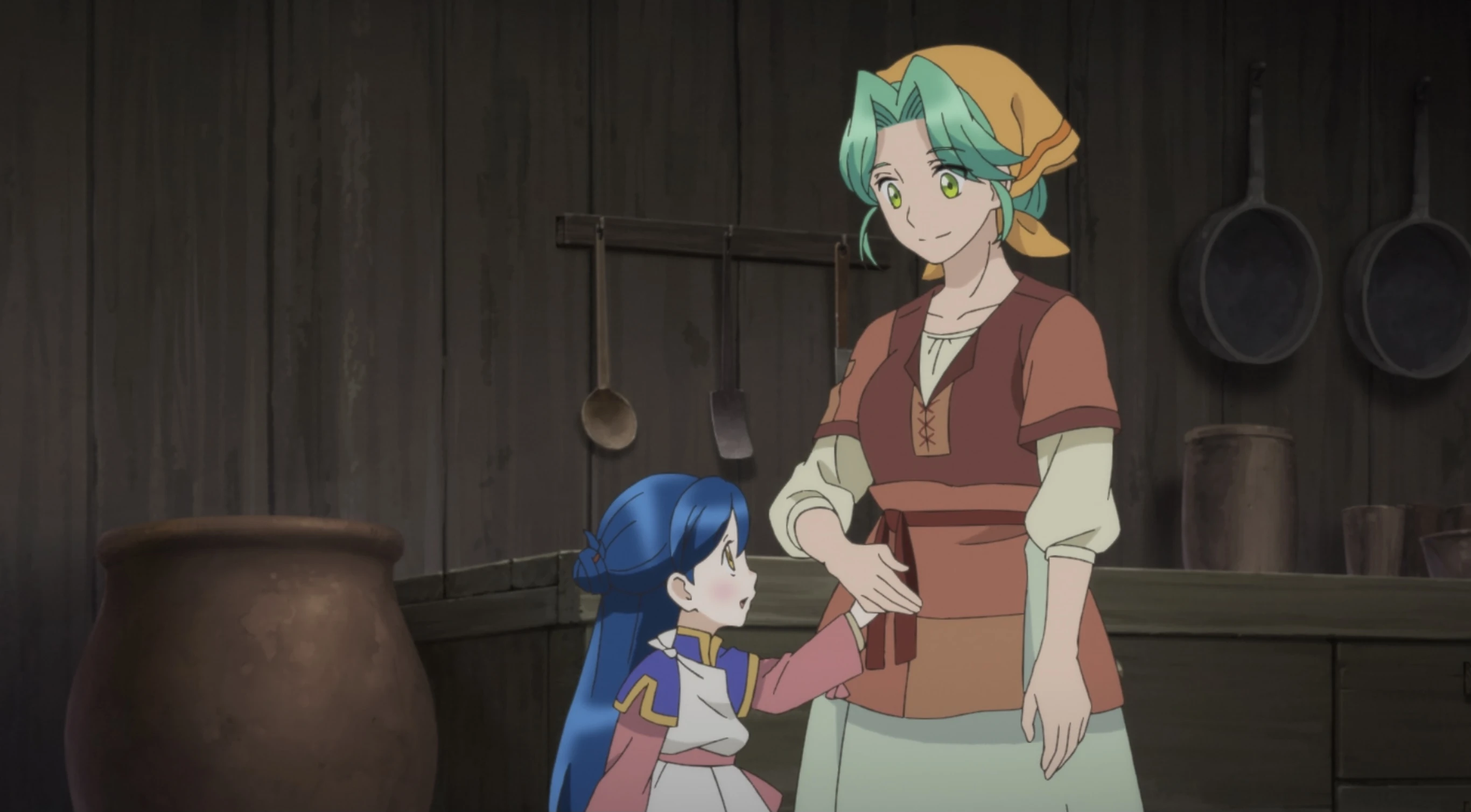 Effa tells Myne she's expecting a baby.