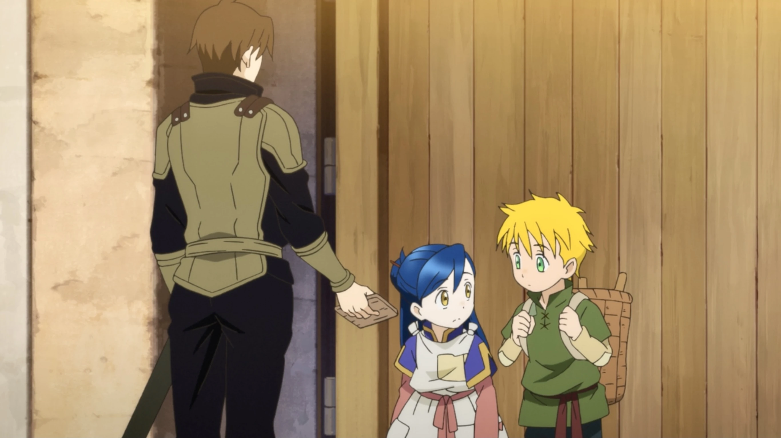 This episode was adapted from Part 1 Volume 1 of the Light Novel series (Chapter 23: The Road to a Meeting - Chapter 24: Meeting with the Merchant) and Part 1 Volume 2 (Chapter 1: The Road to Washi - Chapter 3: Summons from Benno).