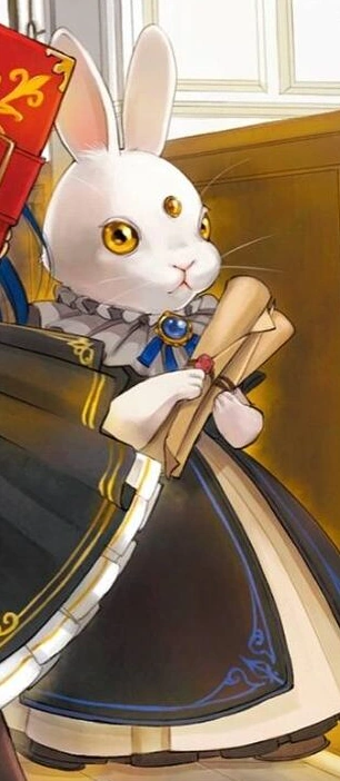 At one point in Solange's youth, the most recent master of the pair gave them outfits made purely for cuteness without considering how they might interfere with work. Their large hats kept falling off and their billowing sleeves made them knock over the stacks of gold paid as deposit. Despite these hindrances, the two magic tools attempted to continue their work unperturbed, neither trying to take off the cumbersome accessories, nor complaining even a single time. This forced the librarians to assign a person to keep an eye on them all the time, and their outfits were replaced with more practical ones within a couple of days. Since then it has become the norm to keep make their sleeves only reach their elbows.[8]