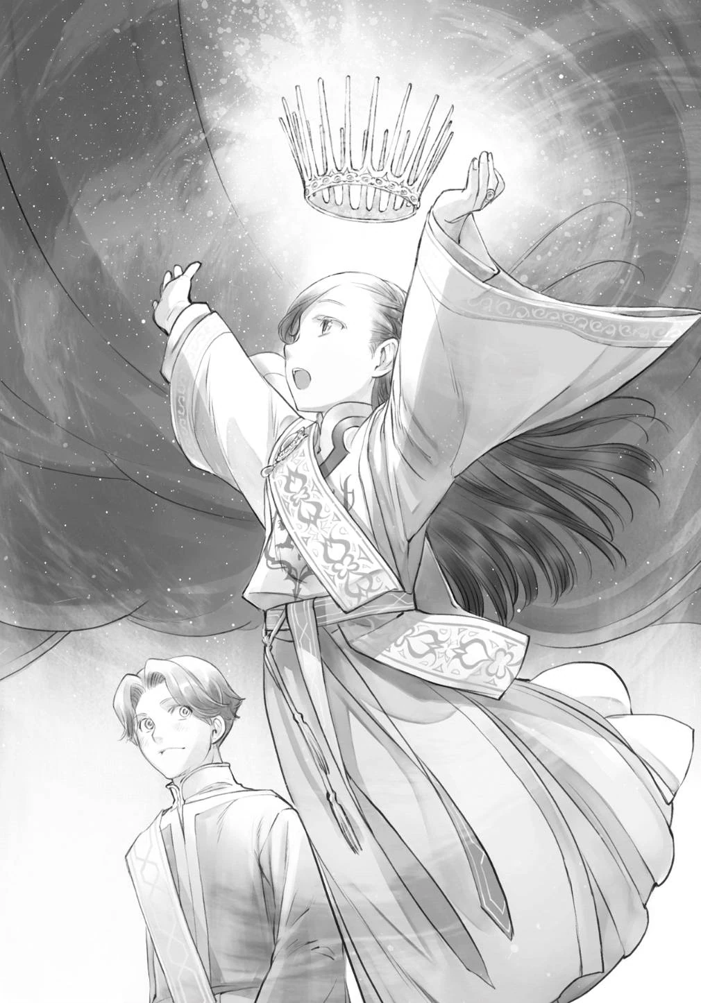 For Prince Sigiswald's wedding, the royal family wished to have a true blessing performed, for which they decreed that Ehrenfest's High Bishop Rozemyne would hold the ceremony, in place of the Sovereign High Bishop. Knowing that someone with abundant mana would perform the ceremony, as well as the resurfacing knowledge of the importance of religious ceremonies thanks to Ehrenfest and Dunkelfelger's research, the Sovereign Temple uses this opportunity to attempt a revival of the original Starbind Ceremony. After getting permission from Prince Anastasius, Rozemyne agrees, but since she was not informed of needing Ehrenfest's divine instruments ahead of time, she opts to morph her schtappe into the cape and crown during the ceremony.