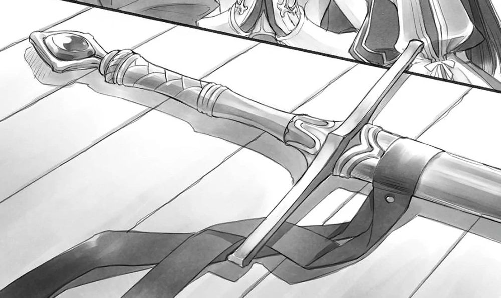 While pouring mana into the blade, Rozemyne reflects that what Angelica really needs is more brainpower and more motivation to study, and she remembers her own experience with Ferdinand’s strict teaching style. While Rozemyne is pouring mana into the blade, she is interrupted by Eckhart who promptly calls Ferdinand. Worrying that Rozemyne's lack of education on mana might have caused issues to the blade, he pours a small amount of mana into it to check it, but can't initially find anything wrong with it, much to Angelica and Rozemyne's relief. Following this Ferdinand goes to lecture the gathered people at length.